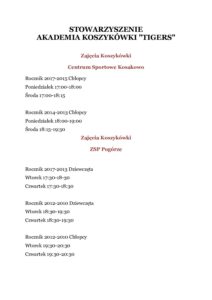 PLAN ZAJĘĆ TIGERS